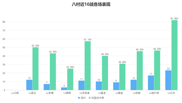 目前来看八村总体表现尚可但终归不够稳定,虽说射手的状态有起伏较为正常但八村却时常出现超鬼的情况,对阵公牛时他的表现自然优异但就近10战而言也有过单场6中0一分未得的情况发生,因此八村目前需要做到的一件事就是提高稳定性。
